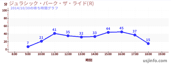 • ジュラシック・パーク・ザ・ライド(R)$B$N(B2014年10月30日の待ち時間