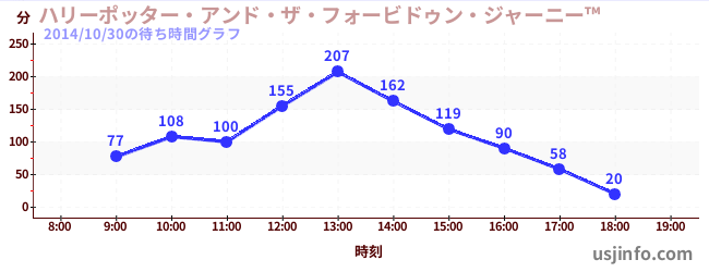 • ハリーポッター・アンド・ザ・フォービドゥン・ジャーニー™$B$N(B2014年10月30日の待ち時間