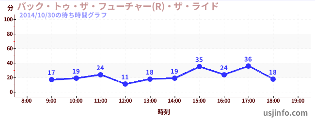 • バック・トゥ・ザ・フューチャー(R)・ザ・ライド$B$N(B2014年10月30日の待ち時間