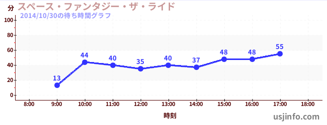 • スペース・ファンタジー・ザ・ライド$B$N(B2014年10月30日の待ち時間