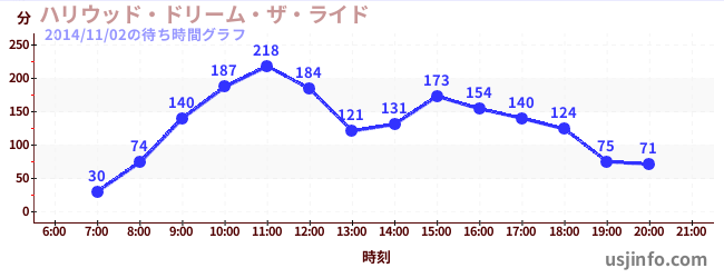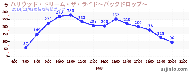 • ハリウッド・ドリーム・ザ・ライド〜バックドロップ〜$B$N(B2014年11月02日の待ち時間