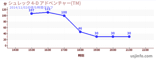 • シュレック 4-D アドベンチャー(TM)$B$N(B2014年11月02日の待ち時間
