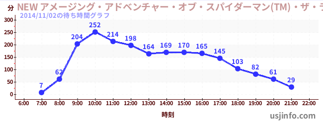 • NEW アメージング・アドベンチャー・オブ・スパイダーマン(TM)・ザ・ライド 4K3D$B$N(B2014年11月02日の待ち時間