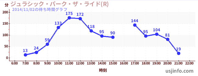 • ジュラシック・パーク・ザ・ライド(R)$B$N(B2014年11月02日の待ち時間