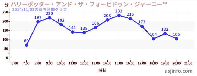 • ハリーポッター・アンド・ザ・フォービドゥン・ジャーニー™$B$N(B2014年11月02日の待ち時間