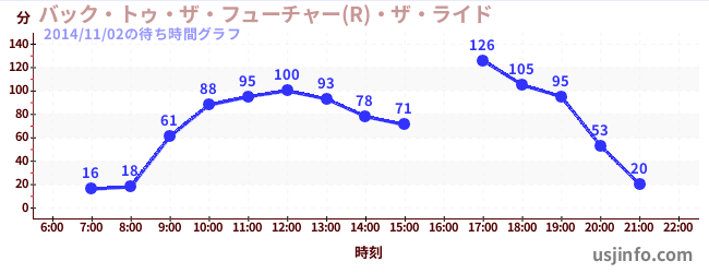 • バック・トゥ・ザ・フューチャー(R)・ザ・ライド$B$N(B2014年11月02日の待ち時間