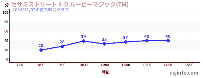 • セサミストリート 4-D ムービーマジック(TM)$B$N(B2014年11月02日の待ち時間