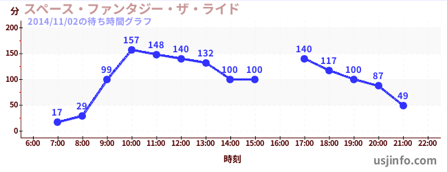 • スペース・ファンタジー・ザ・ライド$B$N(B2014年11月02日の待ち時間