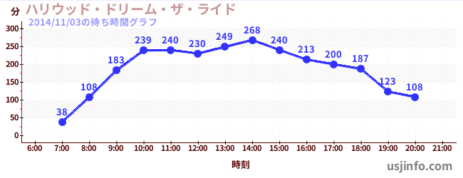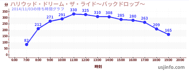 • ハリウッド・ドリーム・ザ・ライド〜バックドロップ〜$B$N(B2014年11月03日の待ち時間