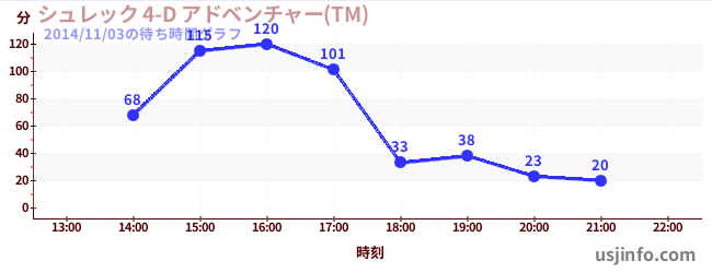 • シュレック 4-D アドベンチャー(TM)$B$N(B2014年11月03日の待ち時間