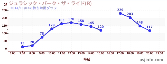 • ジュラシック・パーク・ザ・ライド(R)$B$N(B2014年11月03日の待ち時間