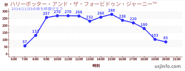 • ハリーポッター・アンド・ザ・フォービドゥン・ジャーニー™$B$N(B2014年11月03日の待ち時間