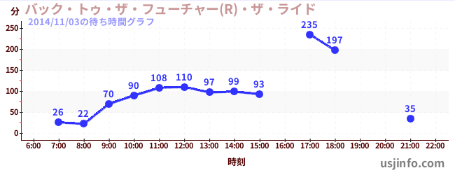 • バック・トゥ・ザ・フューチャー(R)・ザ・ライド$B$N(B2014年11月03日の待ち時間