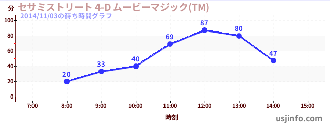 • セサミストリート 4-D ムービーマジック(TM)$B$N(B2014年11月03日の待ち時間