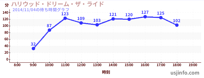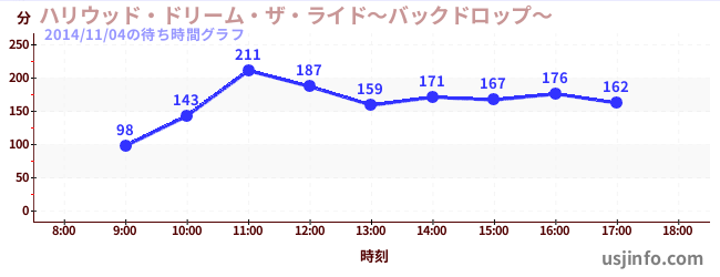 • ハリウッド・ドリーム・ザ・ライド〜バックドロップ〜$B$N(B2014年11月04日の待ち時間