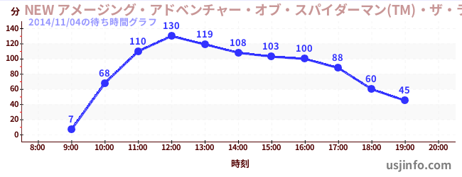 • NEW アメージング・アドベンチャー・オブ・スパイダーマン(TM)・ザ・ライド 4K3D$B$N(B2014年11月04日の待ち時間
