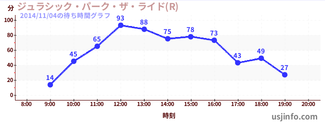 • ジュラシック・パーク・ザ・ライド(R)$B$N(B2014年11月04日の待ち時間