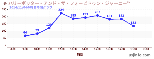 • ハリーポッター・アンド・ザ・フォービドゥン・ジャーニー™$B$N(B2014年11月04日の待ち時間