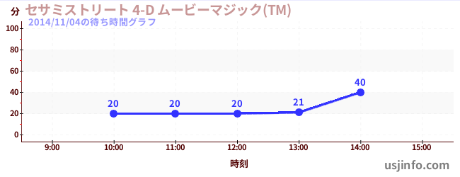 • セサミストリート 4-D ムービーマジック(TM)$B$N(B2014年11月04日の待ち時間