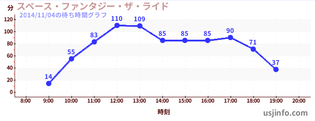 • スペース・ファンタジー・ザ・ライド$B$N(B2014年11月04日の待ち時間