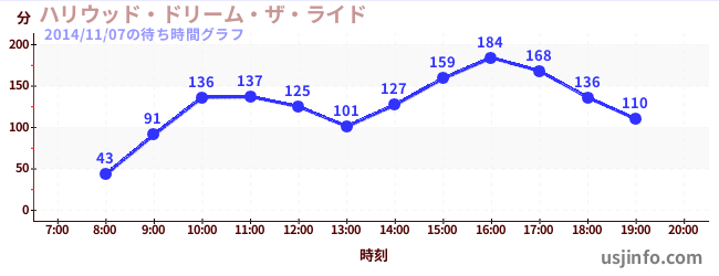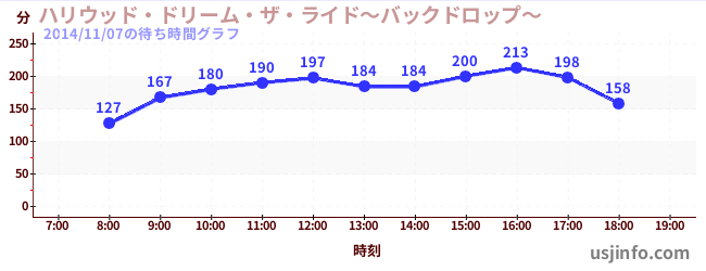 • ハリウッド・ドリーム・ザ・ライド〜バックドロップ〜$B$N(B2014年11月07日の待ち時間