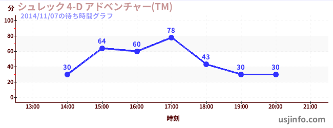 • シュレック 4-D アドベンチャー(TM)$B$N(B2014年11月07日の待ち時間