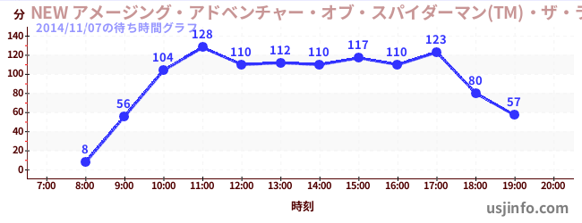 • NEW アメージング・アドベンチャー・オブ・スパイダーマン(TM)・ザ・ライド 4K3D$B$N(B2014年11月07日の待ち時間
