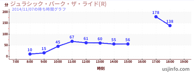 • ジュラシック・パーク・ザ・ライド(R)$B$N(B2014年11月07日の待ち時間