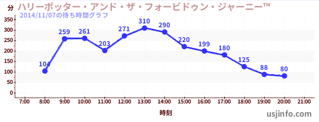 • ハリーポッター・アンド・ザ・フォービドゥン・ジャーニー™$B$N(B2014年11月07日の待ち時間