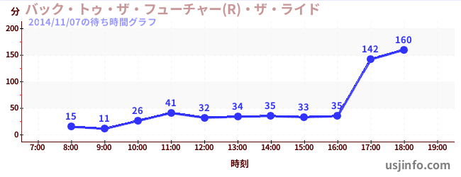 • バック・トゥ・ザ・フューチャー(R)・ザ・ライド$B$N(B2014年11月07日の待ち時間