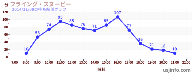 • フライング・スヌーピー$B$N(B2014年11月08日の待ち時間