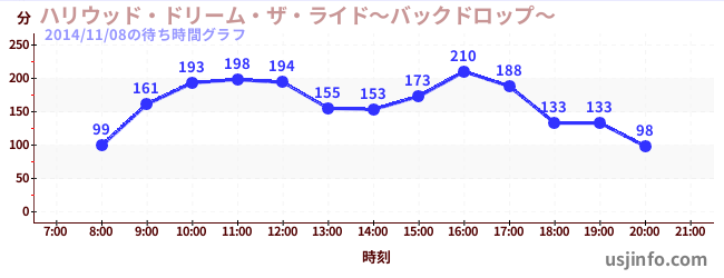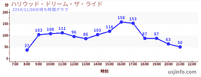 • ハリウッド・ドリーム・ザ・ライド〜バックドロップ〜$B$N(B2014年11月08日の待ち時間