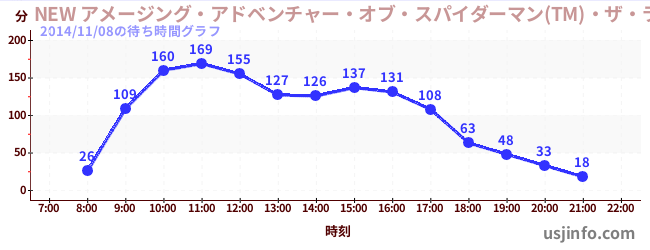 • NEW アメージング・アドベンチャー・オブ・スパイダーマン(TM)・ザ・ライド 4K3D$B$N(B2014年11月08日の待ち時間