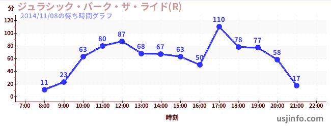 • ジュラシック・パーク・ザ・ライド(R)$B$N(B2014年11月08日の待ち時間