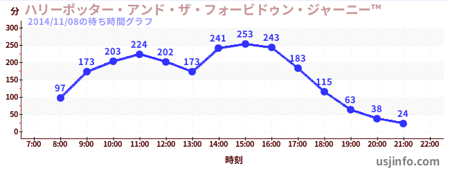 • ハリーポッター・アンド・ザ・フォービドゥン・ジャーニー™$B$N(B2014年11月08日の待ち時間