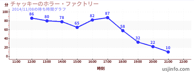 • チャッキーのホラー・ファクトリー$B$N(B2014年11月08日の待ち時間