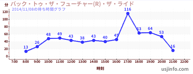 • バック・トゥ・ザ・フューチャー(R)・ザ・ライド$B$N(B2014年11月08日の待ち時間