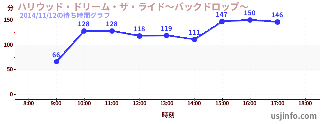 • ハリウッド・ドリーム・ザ・ライド〜バックドロップ〜$B$N(B2014年11月12日の待ち時間
