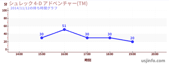• シュレック 4-D アドベンチャー(TM)$B$N(B2014年11月12日の待ち時間