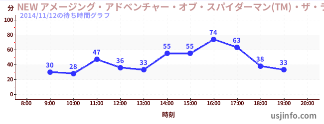 • NEW アメージング・アドベンチャー・オブ・スパイダーマン(TM)・ザ・ライド 4K3D$B$N(B2014年11月12日の待ち時間