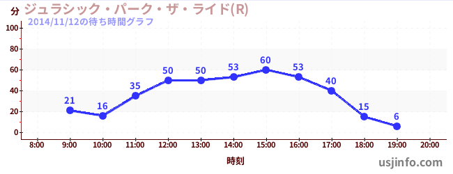 • ジュラシック・パーク・ザ・ライド(R)$B$N(B2014年11月12日の待ち時間