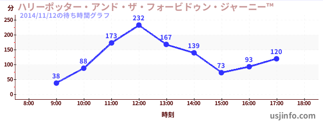 • ハリーポッター・アンド・ザ・フォービドゥン・ジャーニー™$B$N(B2014年11月12日の待ち時間