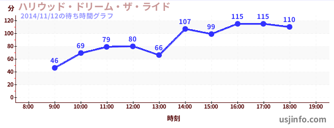 • ハリウッド・ドリーム・ザ・ライド$B$N(B2014年11月12日の待ち時間