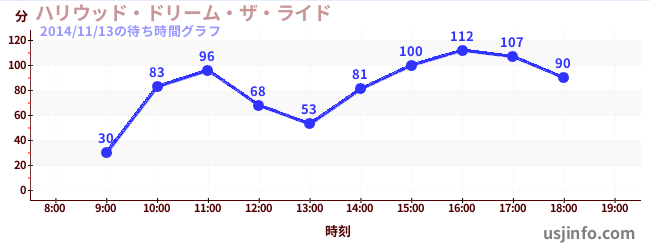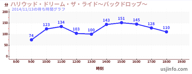 • ハリウッド・ドリーム・ザ・ライド〜バックドロップ〜$B$N(B2014年11月13日の待ち時間