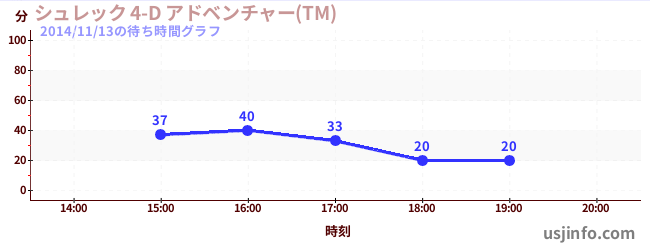• シュレック 4-D アドベンチャー(TM)$B$N(B2014年11月13日の待ち時間