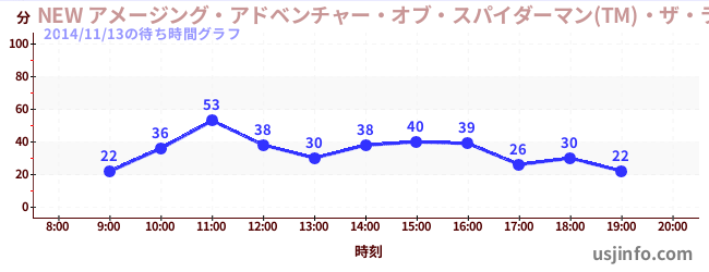 • NEW アメージング・アドベンチャー・オブ・スパイダーマン(TM)・ザ・ライド 4K3D$B$N(B2014年11月13日の待ち時間