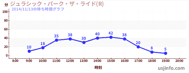 • ジュラシック・パーク・ザ・ライド(R)$B$N(B2014年11月13日の待ち時間
