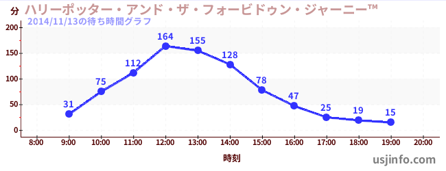 • ハリーポッター・アンド・ザ・フォービドゥン・ジャーニー™$B$N(B2014年11月13日の待ち時間