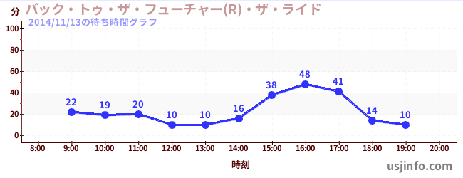 • バック・トゥ・ザ・フューチャー(R)・ザ・ライド$B$N(B2014年11月13日の待ち時間