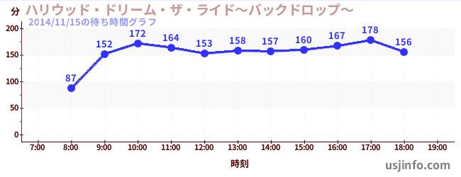 • ハリウッド・ドリーム・ザ・ライド〜バックドロップ〜$B$N(B2014年11月15日の待ち時間